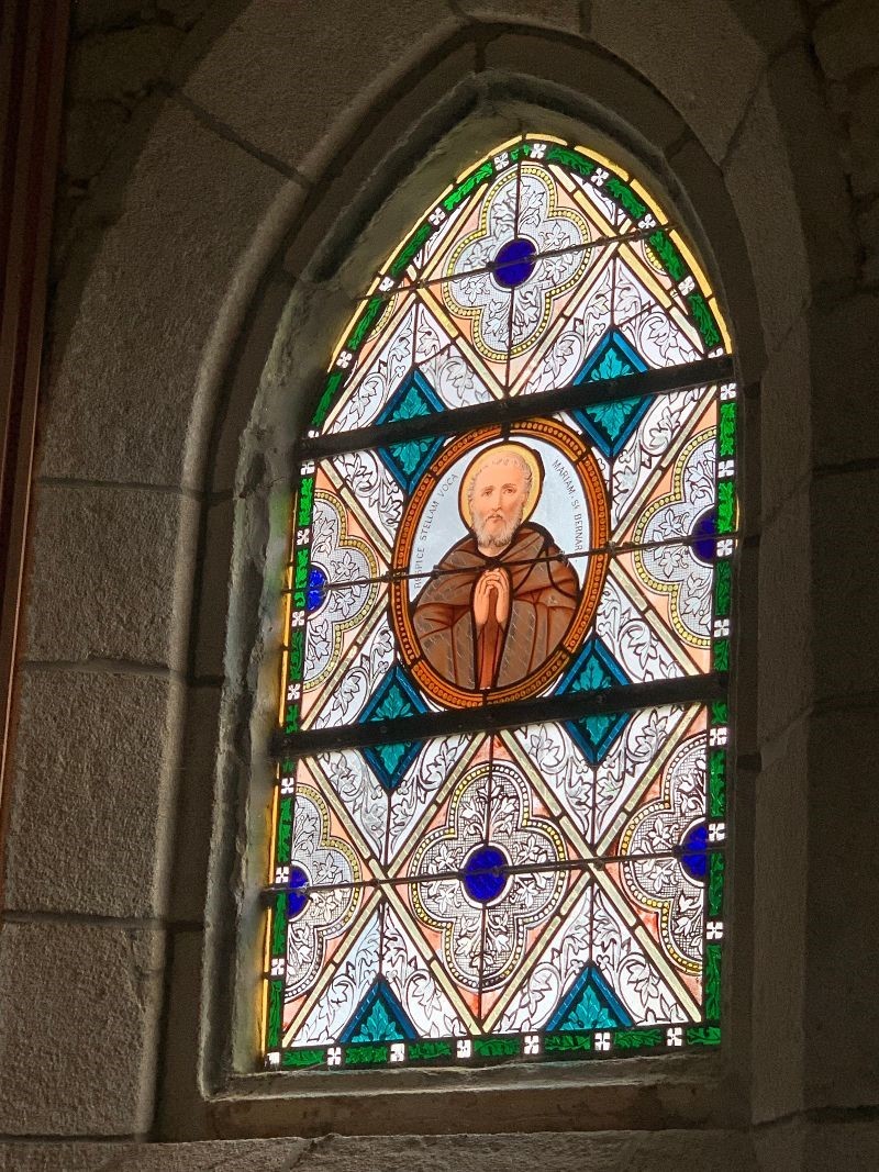 Celui de droite est éclairé par un vitrail avec Saint Bernard en médaillon.